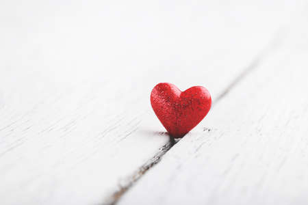 Red heart on white wooden background