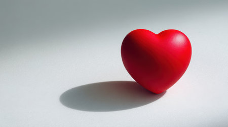 A vibrant red heart object positioned on a soft, light background, casting a gentle shadow. This image evokes feelings of love and warmth, perfect for creative projects.