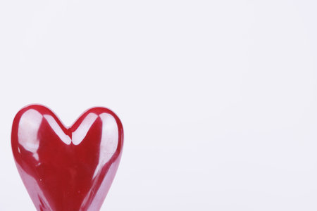 Red love heart on white background. Copy space on right