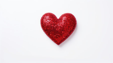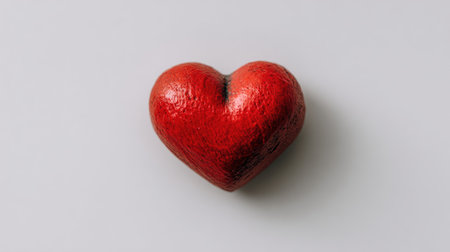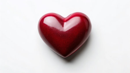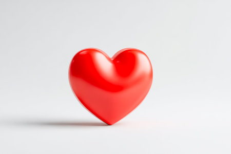 A vibrant red heart shape rests on a smooth, minimalist white background, conveying a sense of love and emotion perfect for a variety of creative and romantic projects.