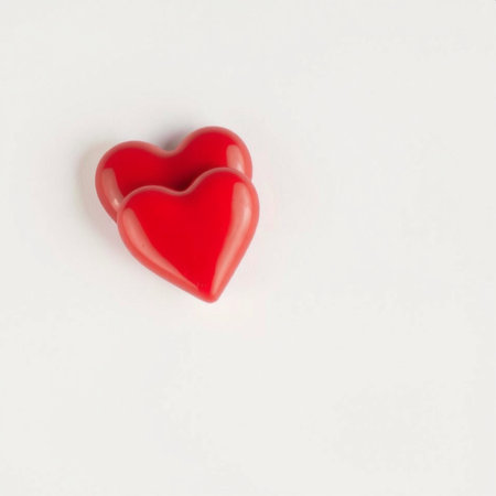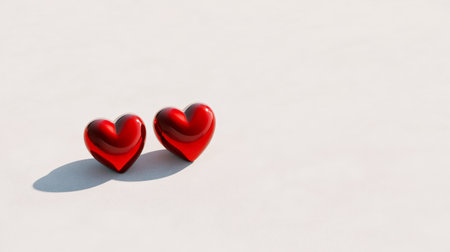 Two shiny red hearts are casting shadows on a white background, creating a perfect image for valentines day, womans day, or any other romantic occasion celebrating love and affection