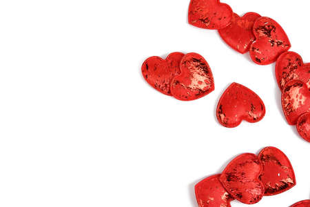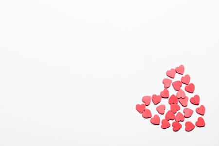 Red hearts pattern isolated on white background. Top view. Copyspace