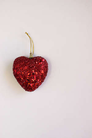 christmas toy red heart. Background for romantic card, New Year celebration, Valentines day