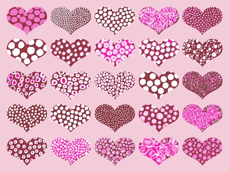 Collection of red and pink hearts on white background