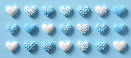 Blue And White Polka Dot Heart-Shaped Candies Arranged In A Pattern On A Blue Background