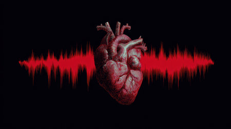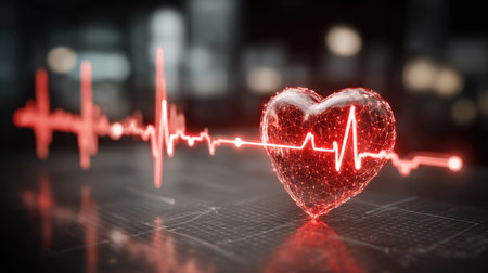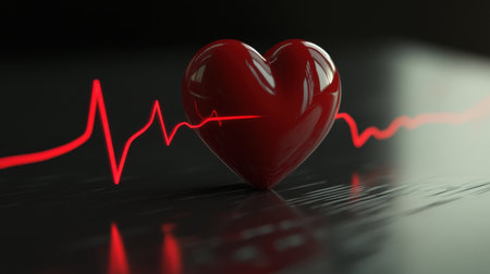 A striking representation of a red heart with a vibrant EKG line, symbolizing love, life, and emotions. The image combines health and artistic elements.