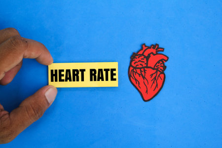 the shape of the heart organ and colored paper with the word heart rate. health and medical concepts