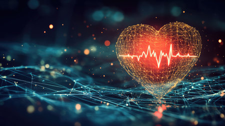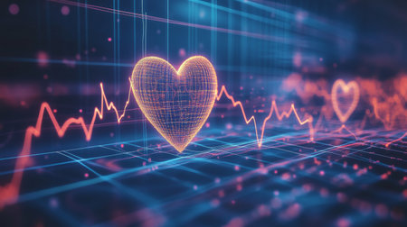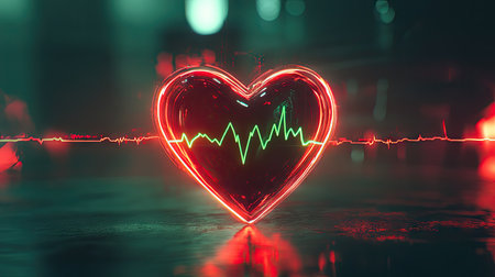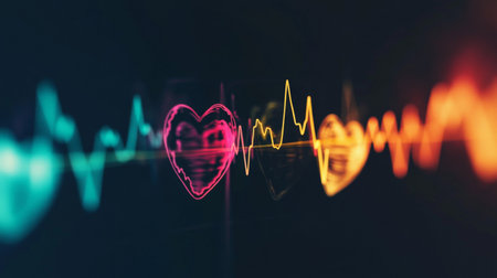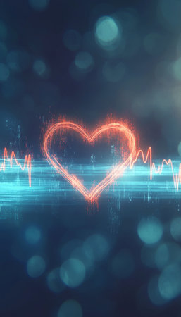 This captivating heart image showcases an enigmatic glow with vibrant pulse lines, symbolizing deep emotional connections and the beauty of vitality and life.