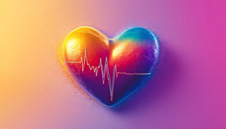 Vibrant Rainbow Heart with ECG Line on a Gradient Background A Symbol of Health and Wellness