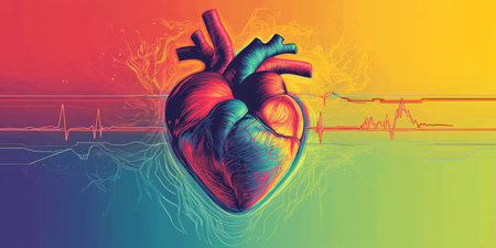 Vibrant Gradient Heartbeat Colorful Anatomical Heart Illustration for Health, Love, and Life