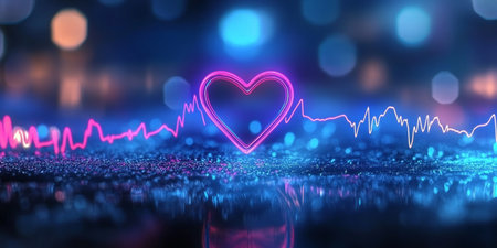 Electric Love A Vibrant Neon Heartbeat Pulse Surrounded by Bokeh Lights and Digital Sparkle