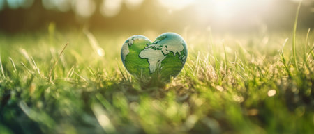 The earth with heart shape, Earth in Heart shape on green grass on sunlight. Generative Ai