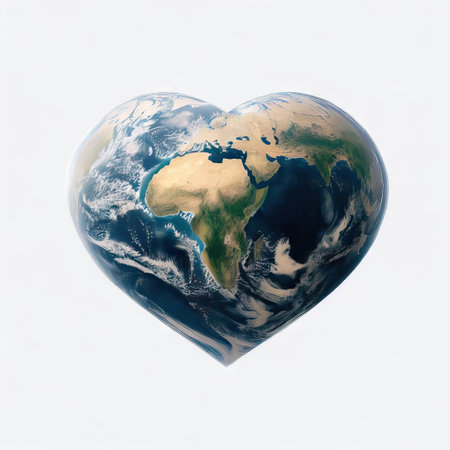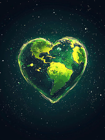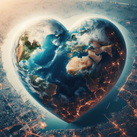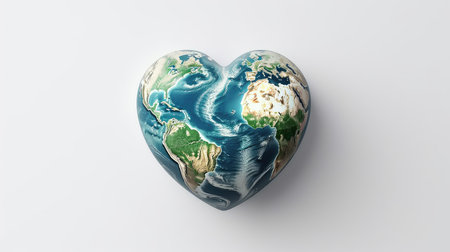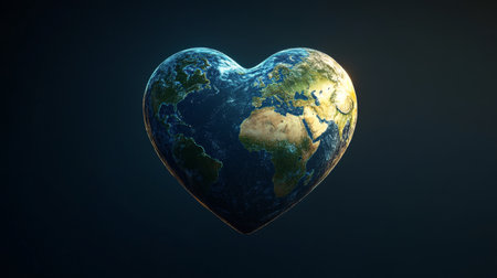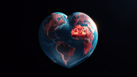 Heart-shaped earth in space with illuminated continents, environmental and love concept