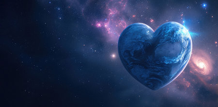 planet Earth in a shape of a heart in outer space, banner with copy space