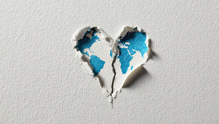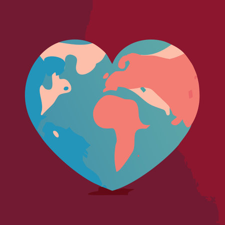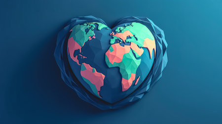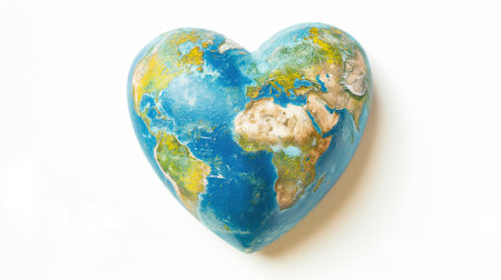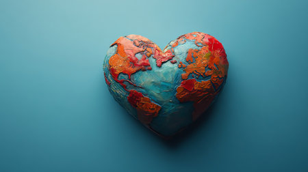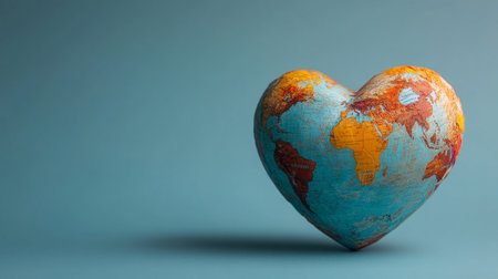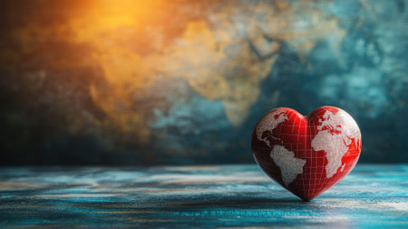 Heart-shaped globe on textured background, symbolizing global love or unity