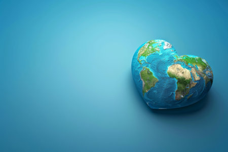 Heart shaped earth on blue background, 3d illustration for earth day and sustainability promotion.