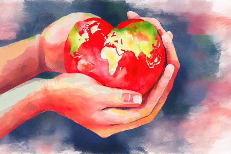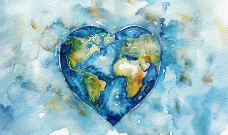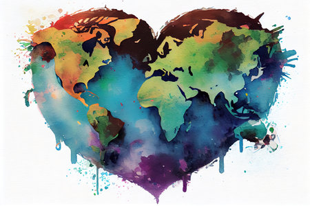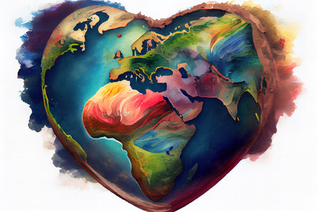 Heart shaped earth, watercolor oil painting effect. Generative Ai