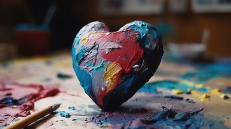 Heart Shape Painted Earth In Artist Studio, Bright color. Generative Ai