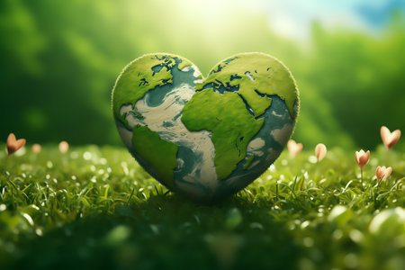 Earth Day planet in the shape of a heart on a lush meadow. GENERATE AI