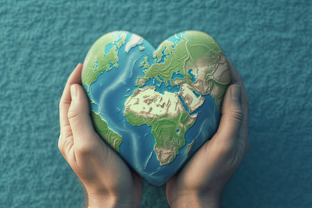 Heartshaped Earth, Love And Protect Our Planet. Concept Nature Conservation, Sustainable Living, Eco-Friendly Practices, Environmental Awareness, Wildlife Conservation.