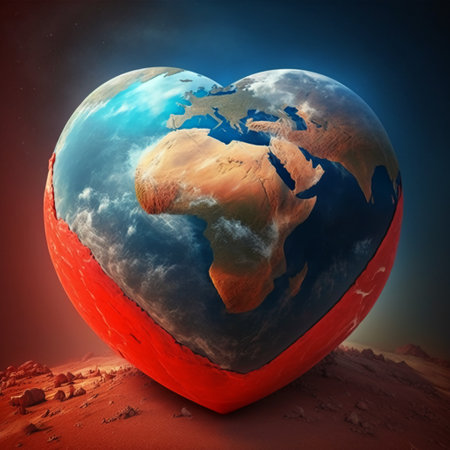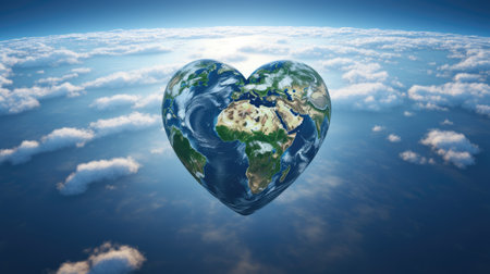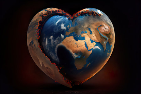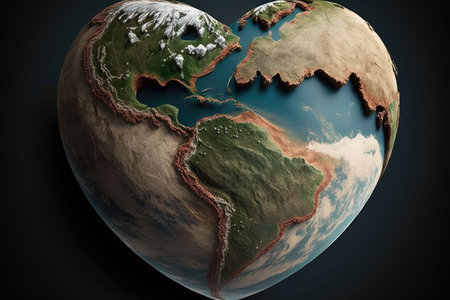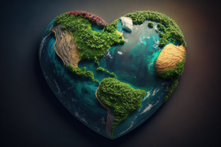 Earth in the shape of heart photo realistic illustration - Generative AI.