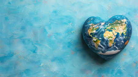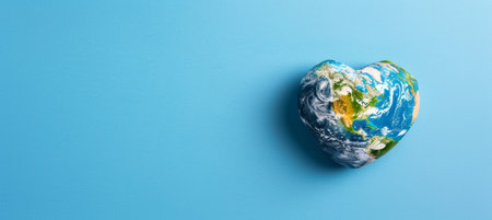 Heart shaped earth globe on blue background for environmental care and sustainable living