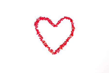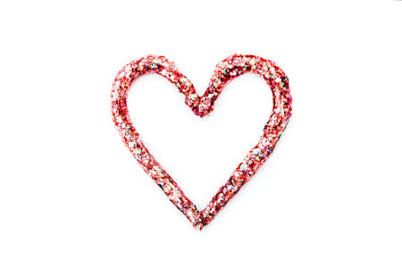 Heart shape made of confetti on white background. Valentine's day concept.