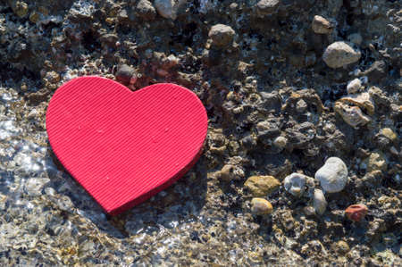 Heart shape placed on a rocky beach. Summer love abstract