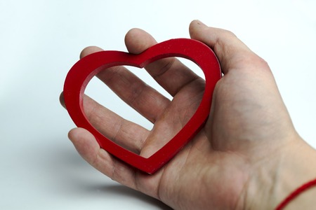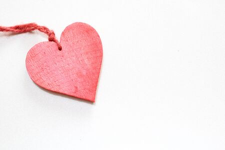Red wooden heart, white surface