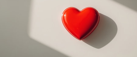A bright red heart is centered on a clean white background. The heart displays a smooth, solid texture, rendered in a simple graphic style. Overhead lighting creates minimal shadows. This image is suitable for various projects related to romance, relationships, or expressing feelings, and is suitable for commercial uses.