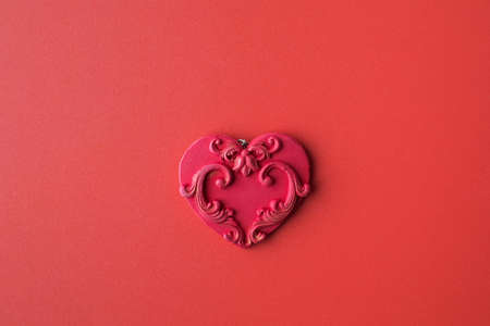 Top view of red wooden handcraft heart symbol with copy space for text or on white background. Valentine's day theme.
