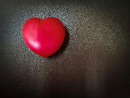 light red heart on dark brown synthetic leather textured with free copy space.