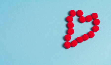 Fluffy red heart on a blue background. Background for the holiday of Valentine's Day. The concept of love, romance and tenderness