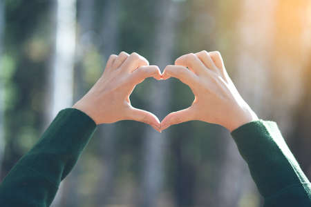 woman finger heart in the nature background
