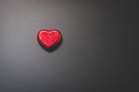 red heart chocolate on blackboard in dark.
