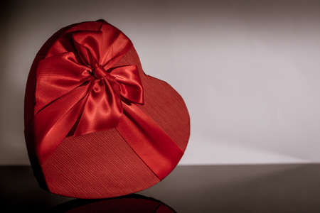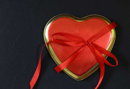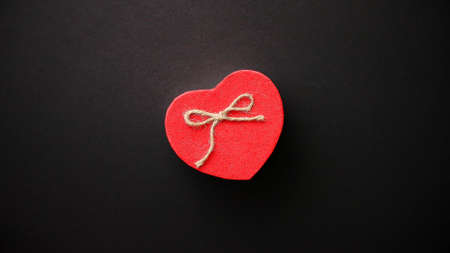 Red Heart shaped Valentines Day gift box on black bacground.
