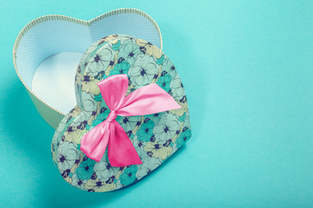overhead view of an empty heart shaped box. Valentines day gift box