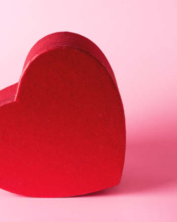 Heart-shaped gift box with pink background close-up