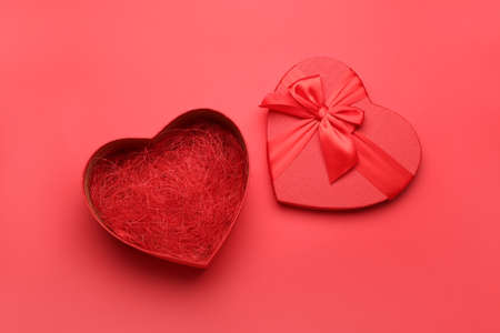 Opened gift box for Valentine's Day on red background