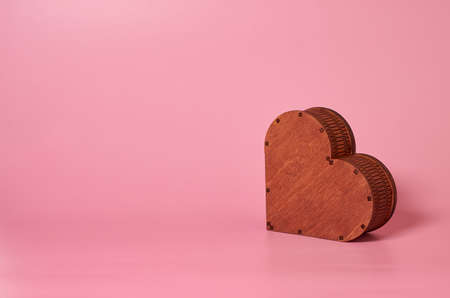 Wooden gift box in the shape of a heart. side view. Mock up.