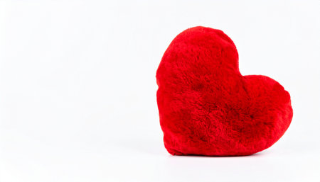 Soft red heart shaped plush toy on white background