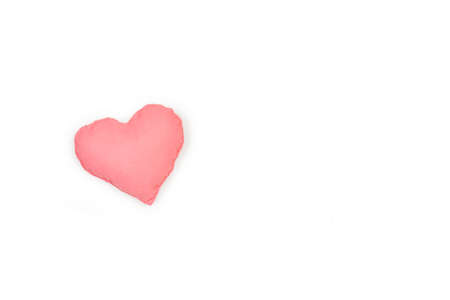 A fabric pink heart on a white background with copy space