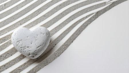 A heart shaped stone placed on a striped white surface, symbolizing love and serenity.