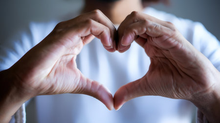 Doctor making heart shape with hands, showing love and care for patients, promoting healthcare and wellbeing