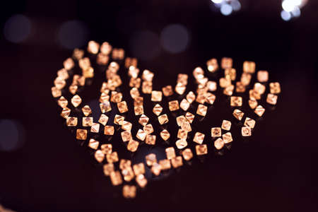 Collection of faceted natural transparent diamonds in shape of heart on a dark background. Till Valentine's Day