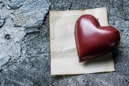 Fresh start of the day. Loving yourself and take care of myself. Red heart with blank paper and copy space. Generative AI