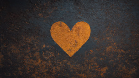 A vibrant orange heart symbol contrasts beautifully against a rusty metal surface, creating an impactful visual for various artistic and emotional projects.