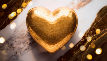 Heart shaped box with golden glitterle background with bokeh lights
