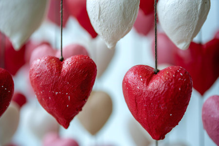 Valentine's day background with heart-shaped decorations on the wall