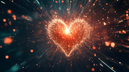 A vibrant heart shape created with sparkling particles, symbolizing love and joy in a visually stunning display.